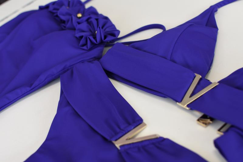 • Бански с меки чашки и V-бижу – модерен силует, който издължава тялото и привлича погледа.